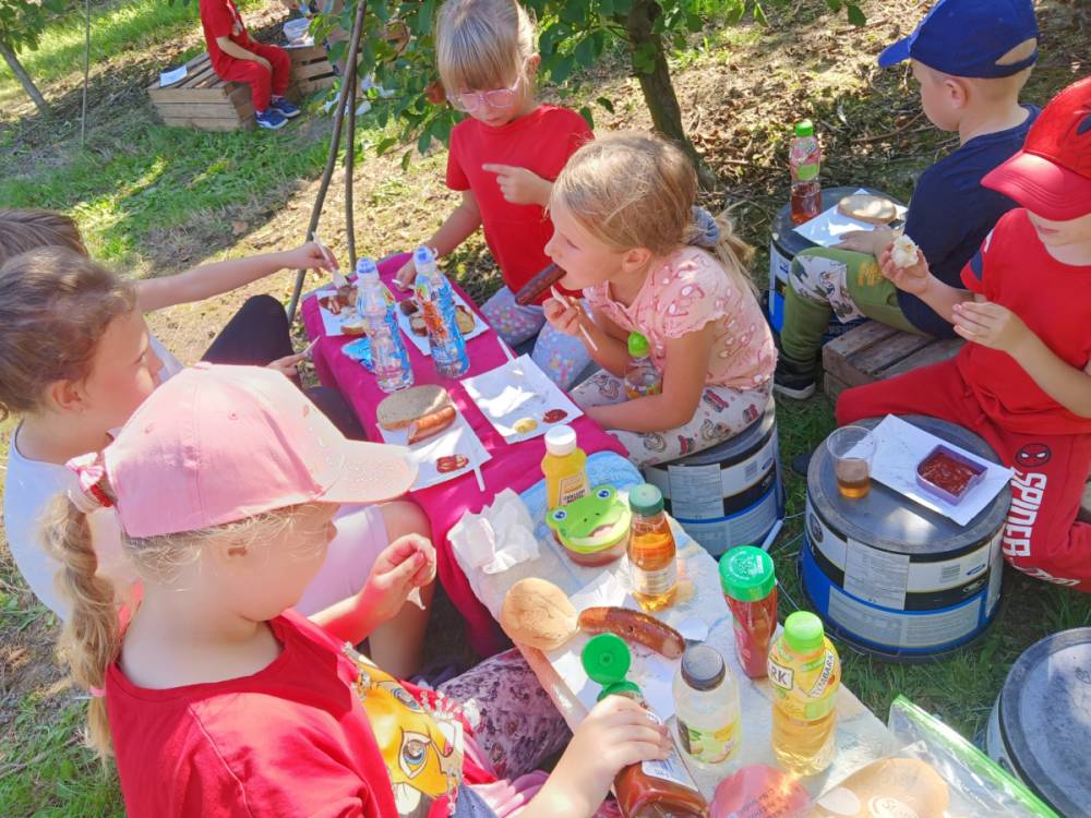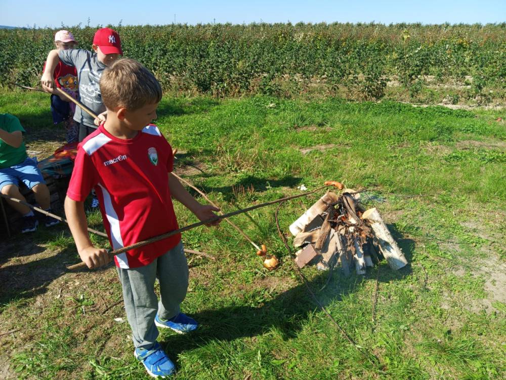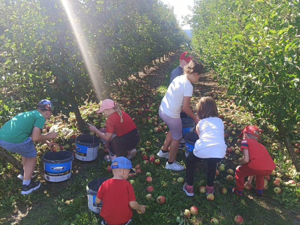 22 września br. przedszkolaki i uczniowie klas II i III wybrali się na wyjątkową wycieczkę do sadu z okazji Dnia Jabłka. Dzieci dowiedziały się, dlaczego sad jest tak ważny dla ludzi, zwierząt i przyrody. Była to doskonała okazja do zabaw i rozmów o zdrowym odżywianiu. Dzieci pokonywały tor przeszkód, odpowiadały na pytania i zespołowo zbierały jabłka. Na zakończenie było pieczenie kiełbasek. Był to czas integracji i radości ze wspólnie spędzonego dnia.