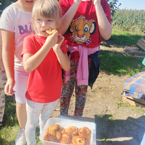 Dziękujemy Państwu Dorc za pomoc w organizacji wycieczki oraz p. Kapicy, p. Żelaznej, a także p. Karabeli za przygotowanie dla dzieci jabłkowych smakołyków.