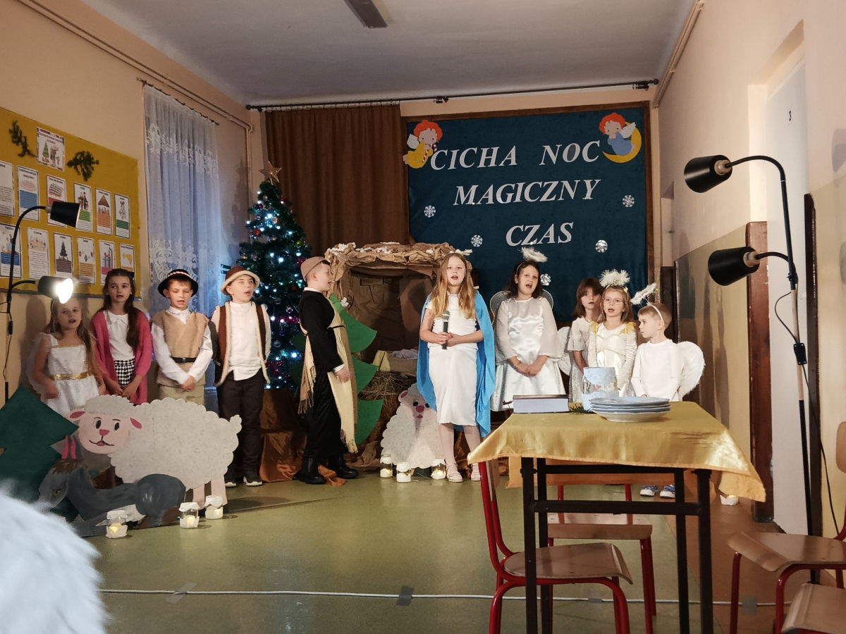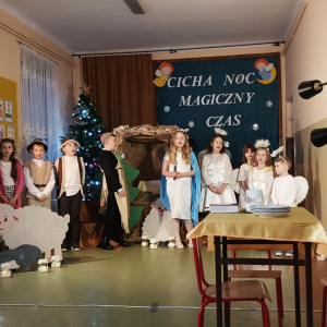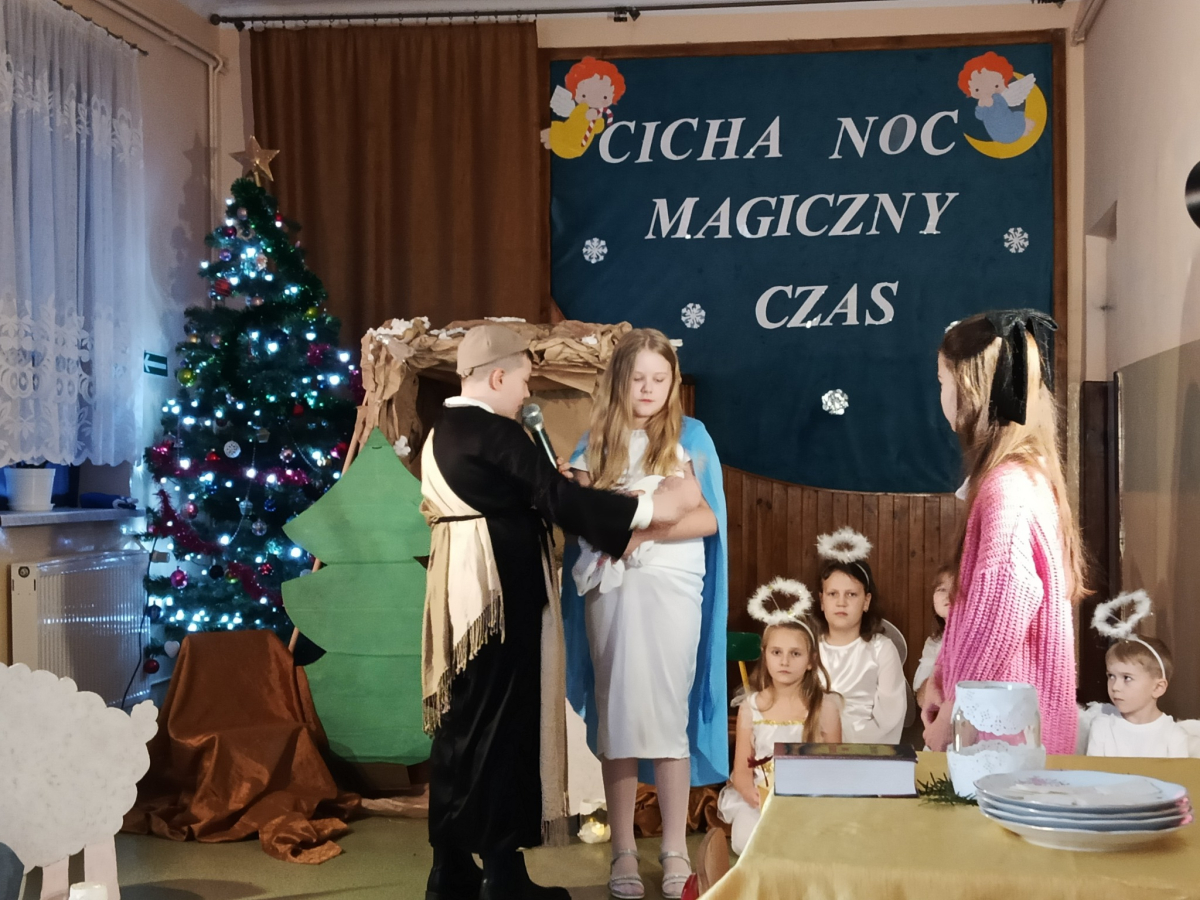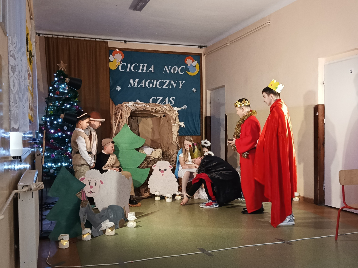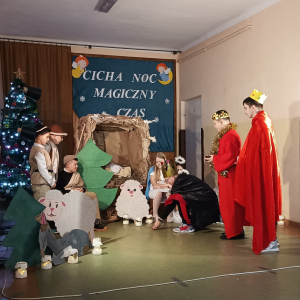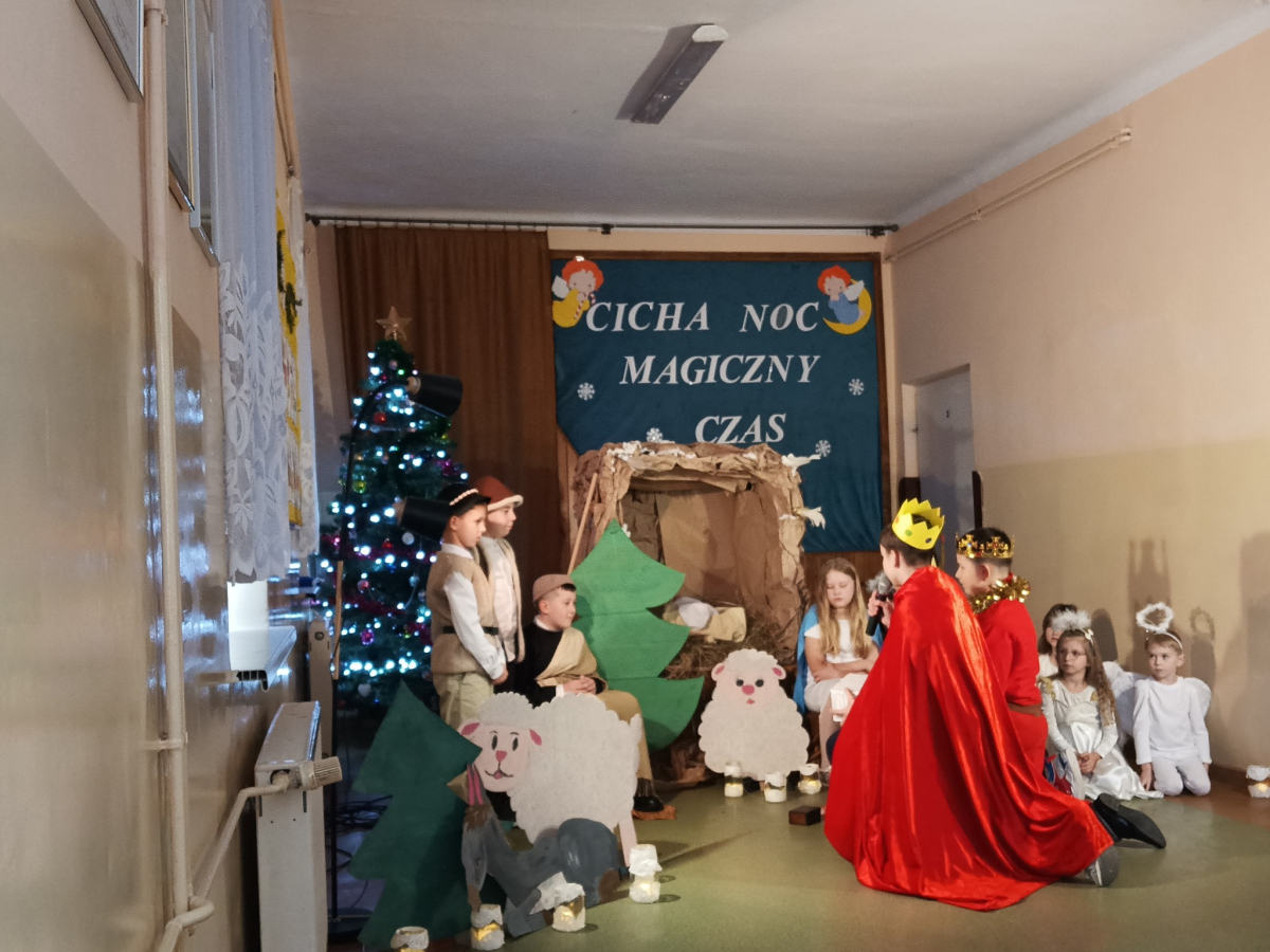 16 grudnia br. w naszej szkole odbyły się jasełka bożonarodzeniowe pt. „Cicha noc...Magiczny czas”. Uczniowie przygotowywali się z wielkim zaangażowaniem, pamiętając o powadze wydarzenia, jakim było przyjście na świat naszego Zbawiciela. Stroje, śpiewane pastorałki, a przede wszystkim gra aktorska sprawiły, że nasze serca wypełniła radość i wprowadziła nas w świąteczny klimat. Po części artystycznej pani dyrektor Aneta Prokopiak złożyła świąteczne życzenia.