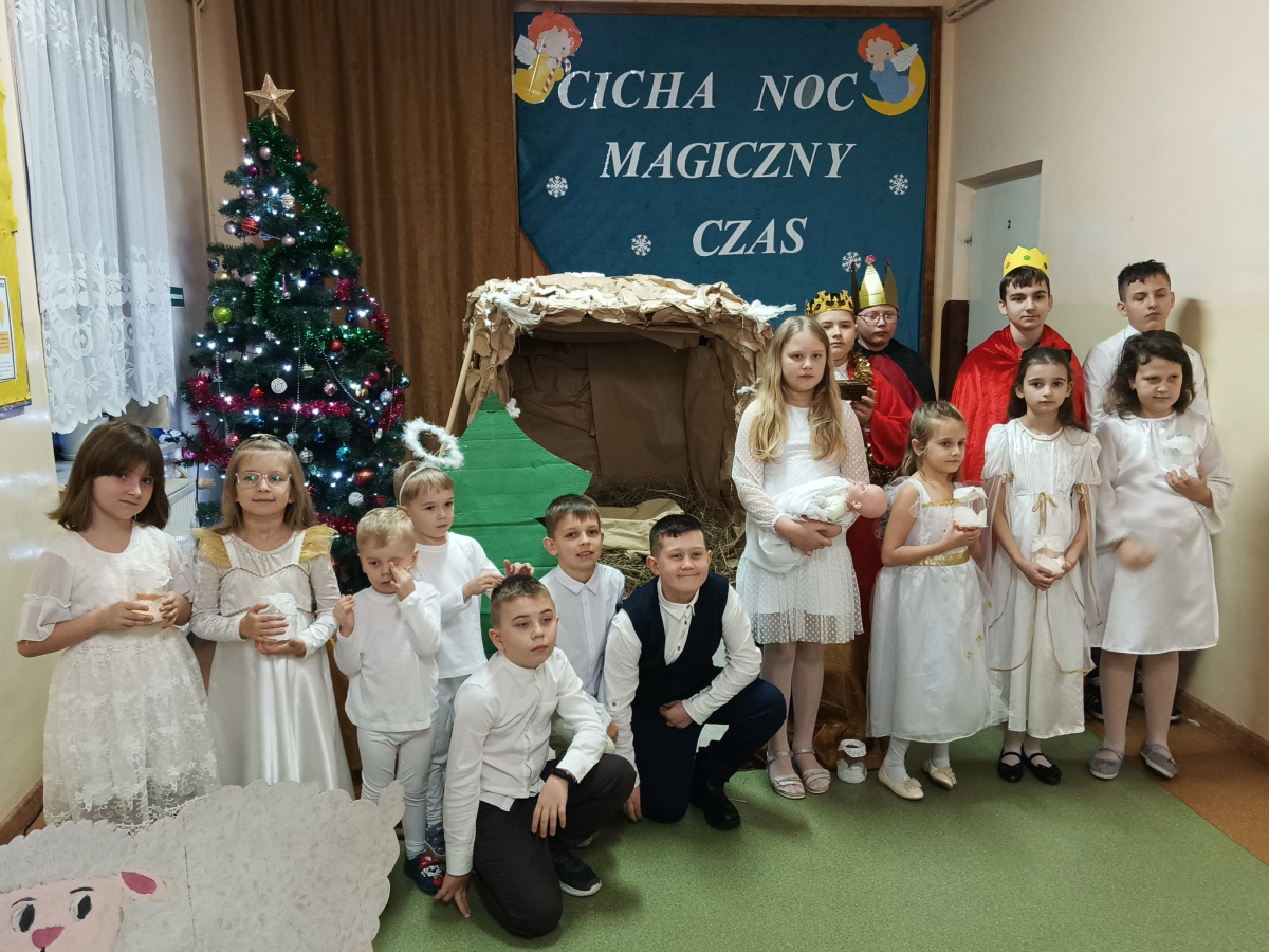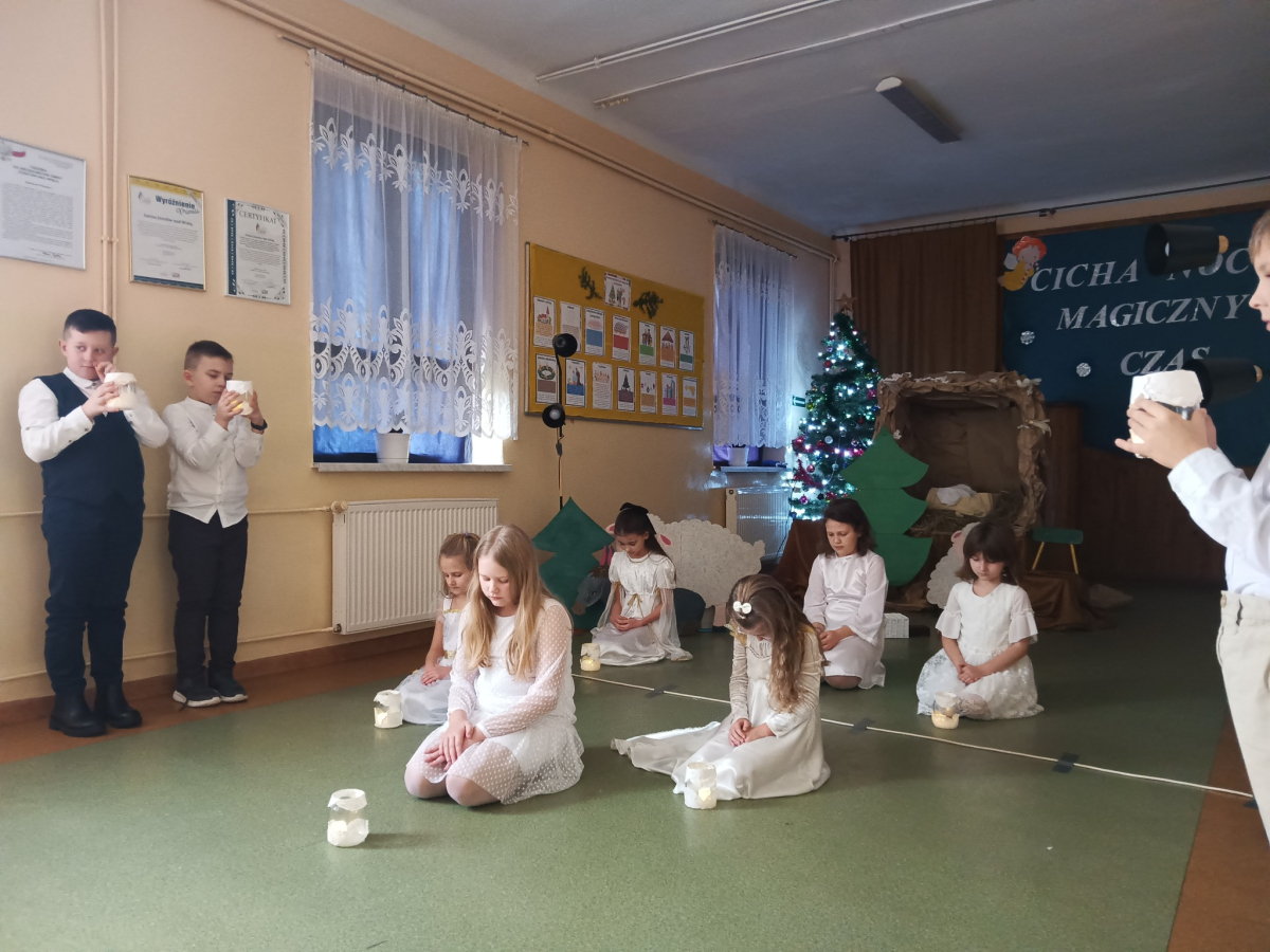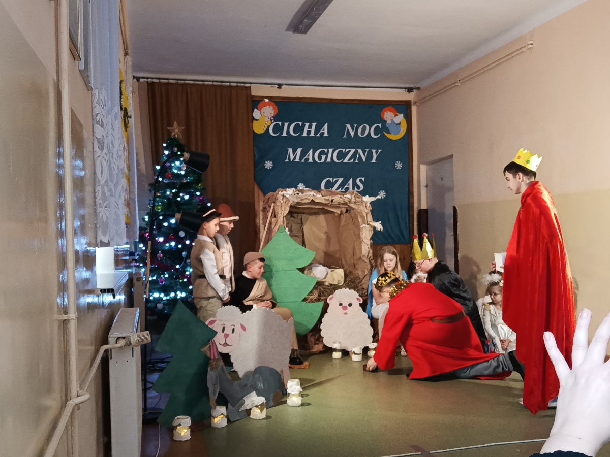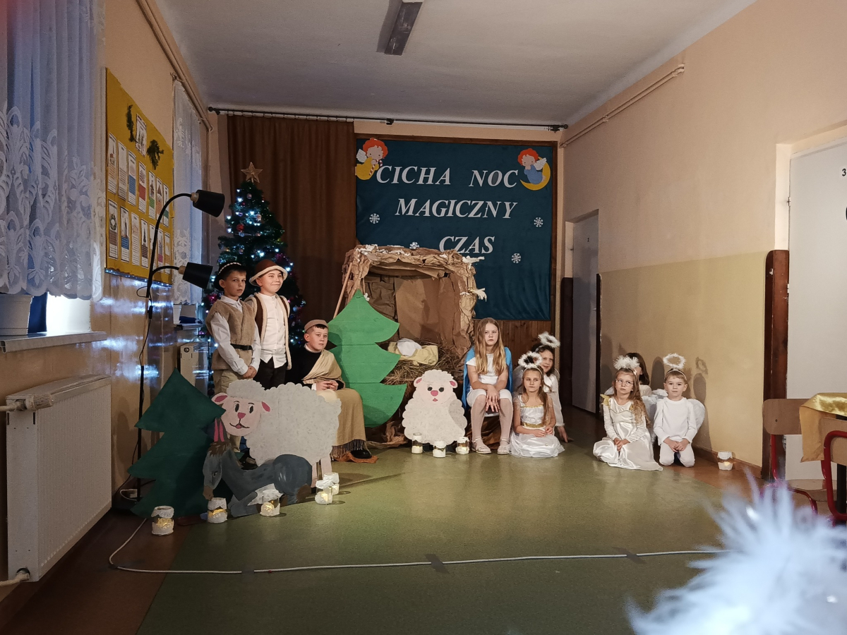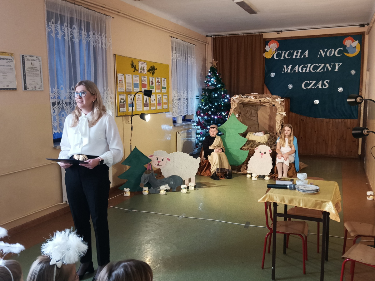 16 grudnia br. w naszej szkole odbyły się jasełka bożonarodzeniowe pt. „Cicha noc...Magiczny czas”. Uczniowie przygotowywali się z wielkim zaangażowaniem, pamiętając o powadze wydarzenia, jakim było przyjście na świat naszego Zbawiciela. Stroje, śpiewane pastorałki, a przede wszystkim gra aktorska sprawiły, że nasze serca wypełniła radość i wprowadziła nas w świąteczny klimat. Po części artystycznej pani dyrektor Aneta Prokopiak złożyła świąteczne życzenia.
