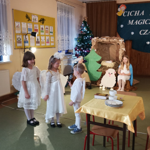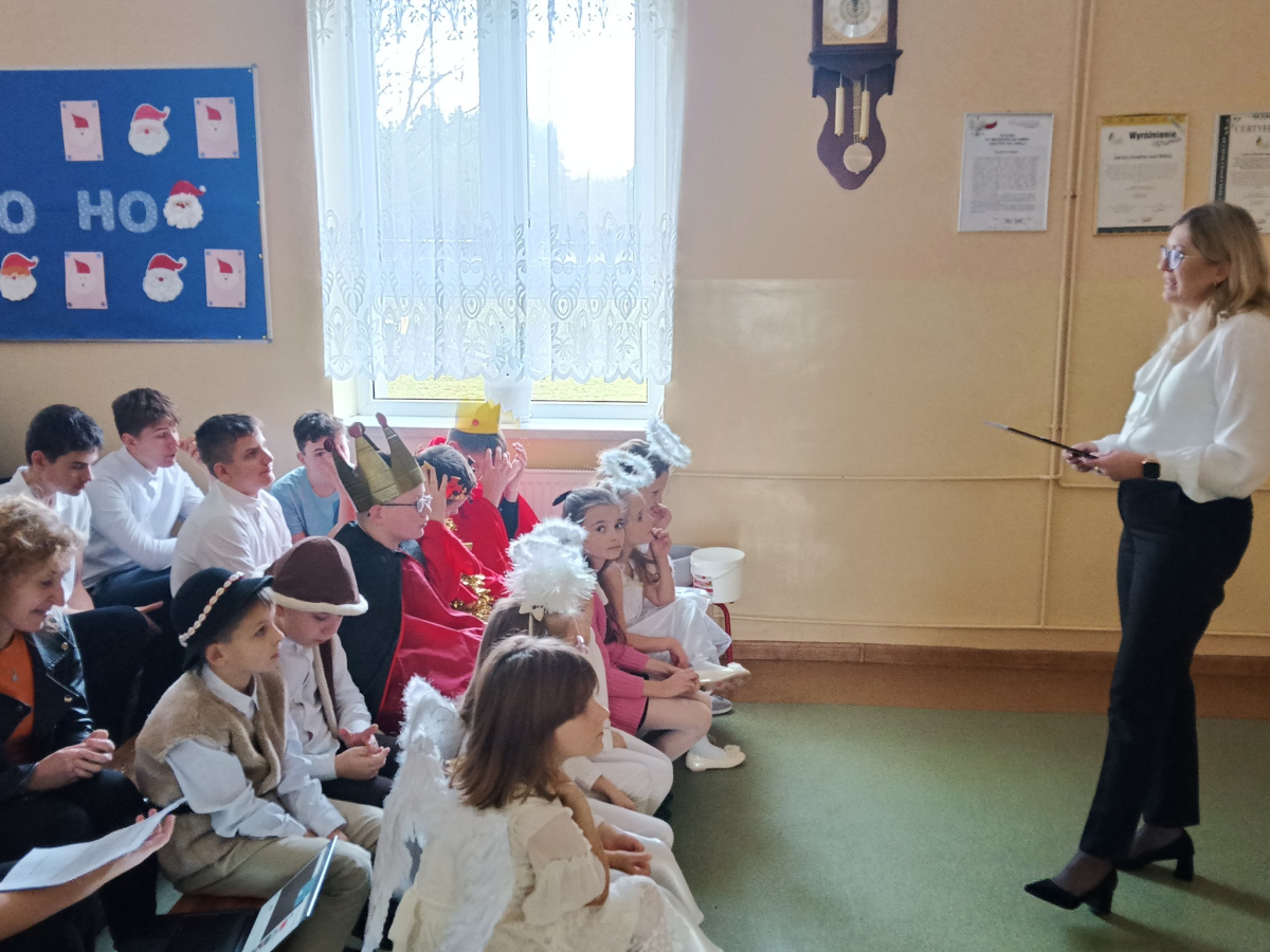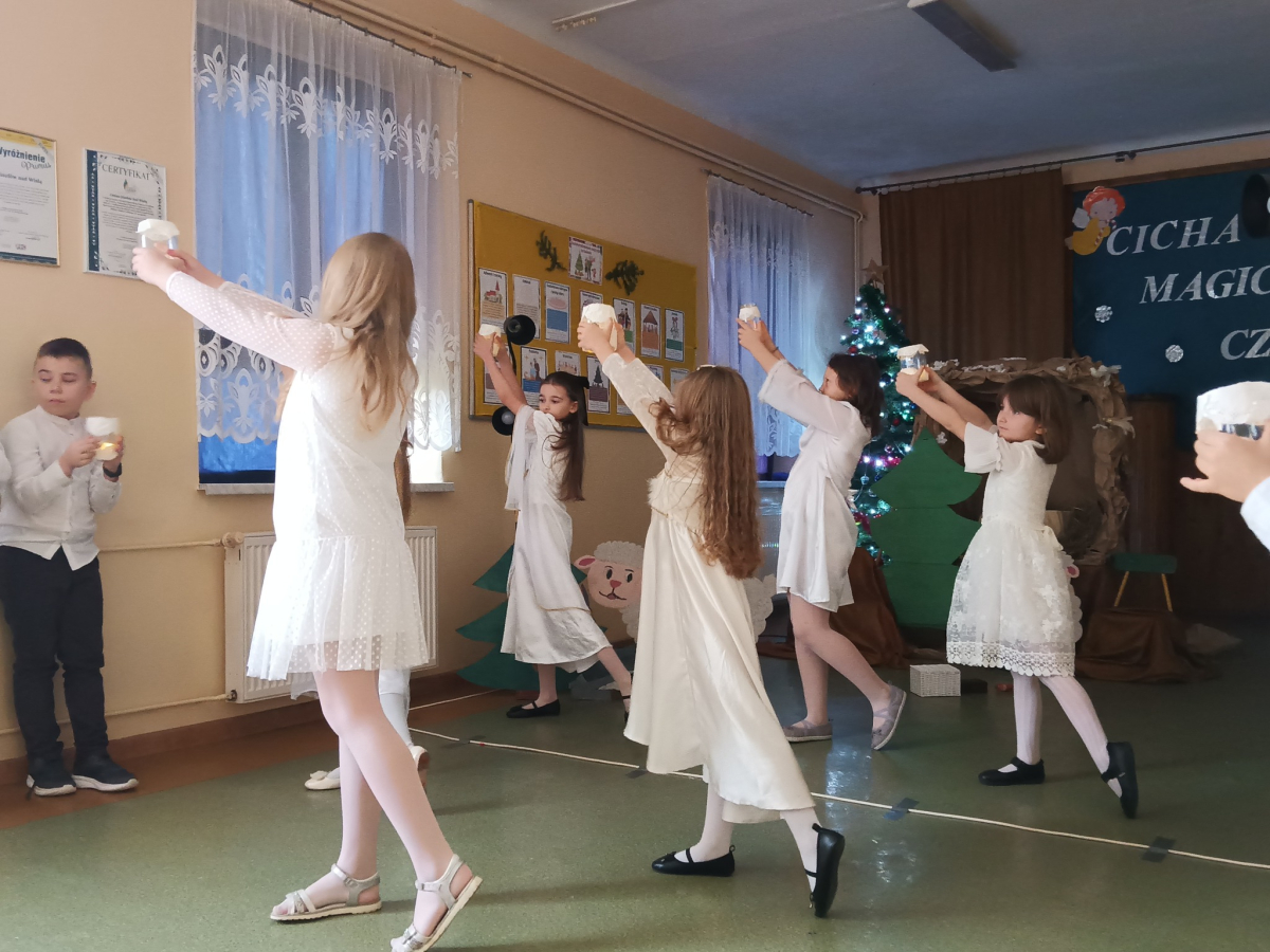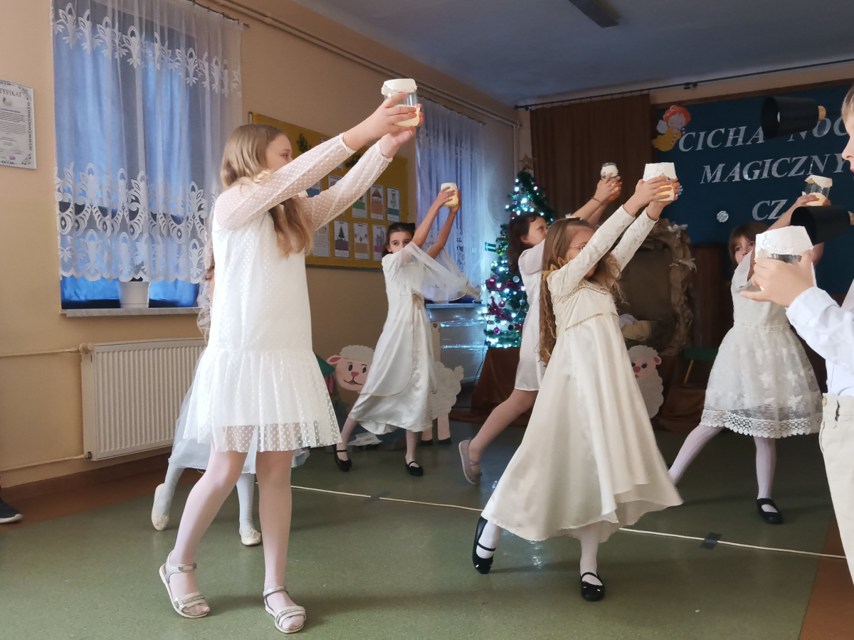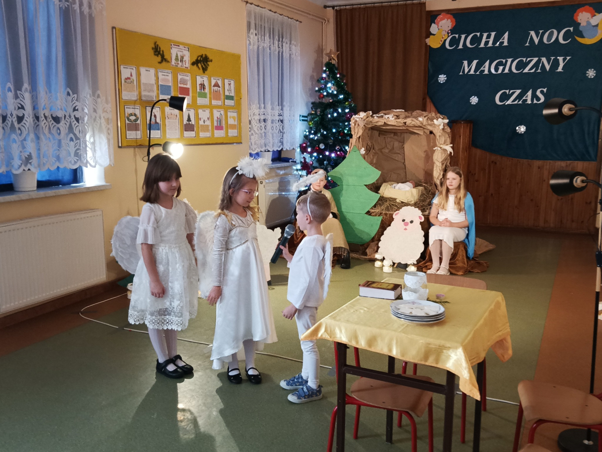 16 grudnia br. w naszej szkole odbyły się jasełka bożonarodzeniowe pt. „Cicha noc...Magiczny czas”. Uczniowie przygotowywali się z wielkim zaangażowaniem, pamiętając o powadze wydarzenia, jakim było przyjście na świat naszego Zbawiciela. Stroje, śpiewane pastorałki, a przede wszystkim gra aktorska sprawiły, że nasze serca wypełniła radość i wprowadziła nas w świąteczny klimat. Po części artystycznej pani dyrektor Aneta Prokopiak złożyła świąteczne życzenia.
