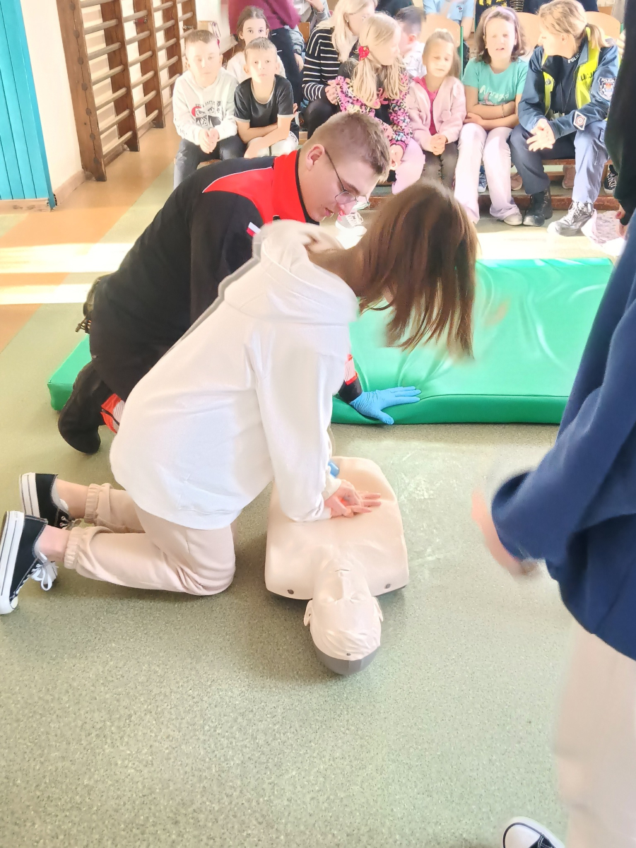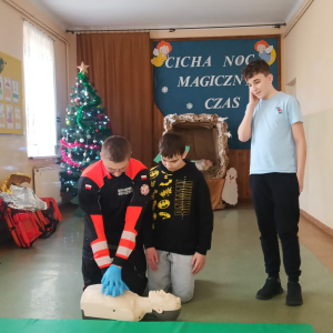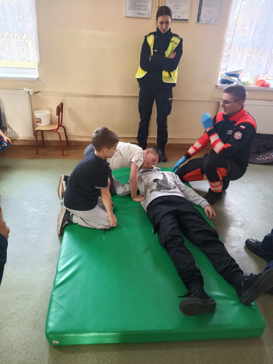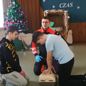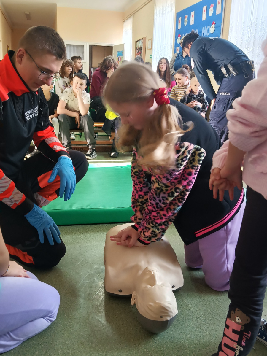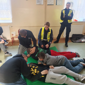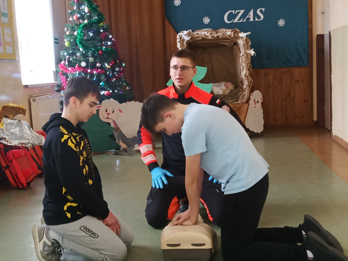 17 grudnia br. w naszej szkole odbyły się warsztaty z zakresu udzielania pierwszej pomocy. Uczniowie spotkali się z dzielnicowym i policjantkami z Komendy Powiatowej Policji w Opolu Lubelskim oraz z ratownikiem medycznym, którzy w ciekawy i praktyczny sposób pokazali, jak reagować w sytuacjach zagrożenia zdrowia i życia. Nie zabrakło ćwiczeń praktycznych, pytań i cennych wskazówek. To była ważna lekcja odpowiedzialności i bezpieczeństwa. Dziękujemy za poświęcony czas i przekazaną wiedzę.