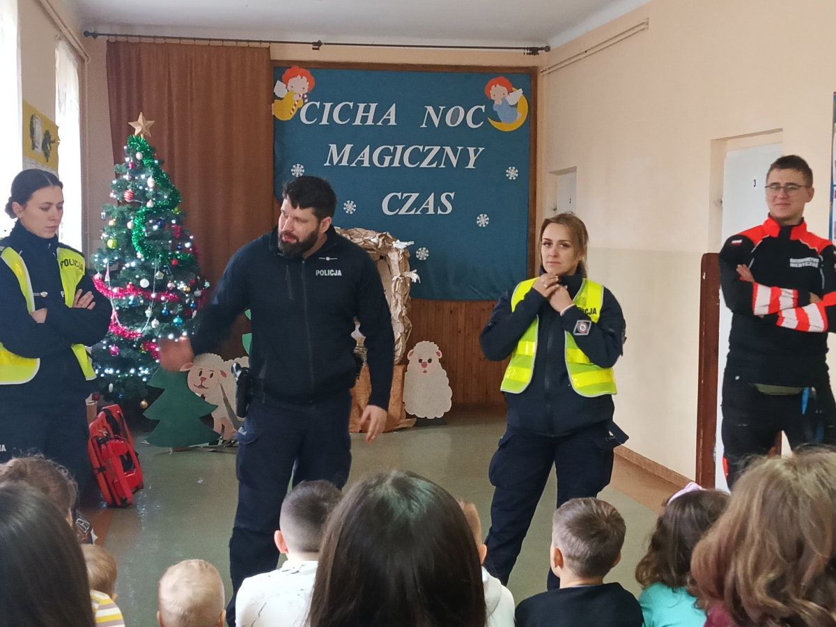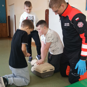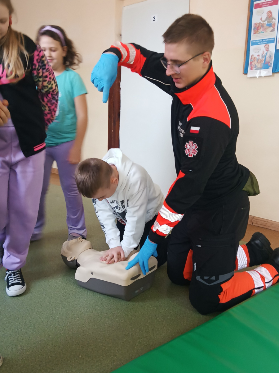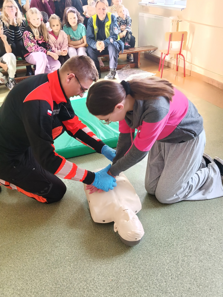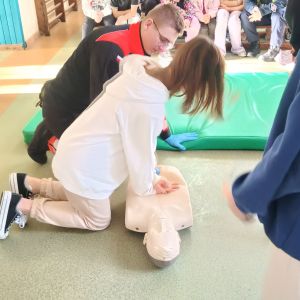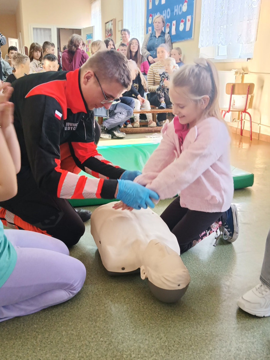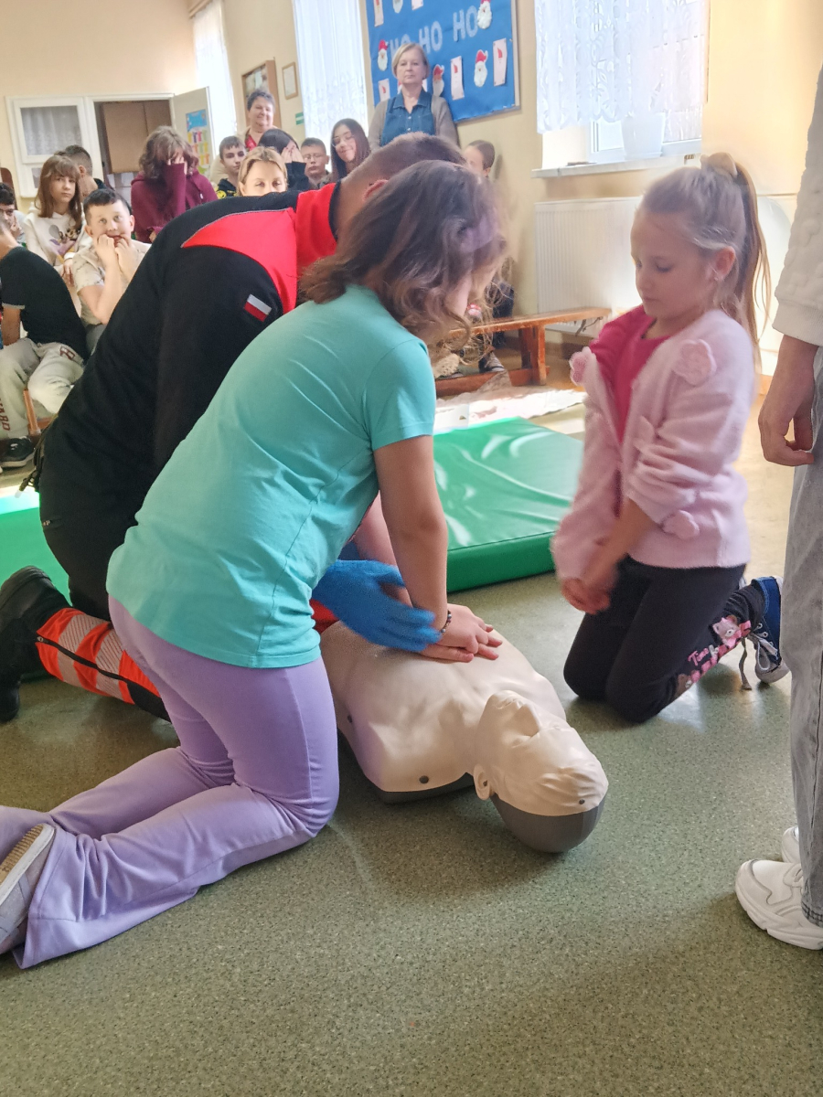17 grudnia br. w naszej szkole odbyły się warsztaty z zakresu udzielania pierwszej pomocy. Uczniowie spotkali się z dzielnicowym i policjantkami z Komendy Powiatowej Policji w Opolu Lubelskim oraz z ratownikiem medycznym, którzy w ciekawy i praktyczny sposób pokazali, jak reagować w sytuacjach zagrożenia zdrowia i życia. Nie zabrakło ćwiczeń praktycznych, pytań i cennych wskazówek. To była ważna lekcja odpowiedzialności i bezpieczeństwa. Dziękujemy za poświęcony czas i przekazaną wiedzę.
