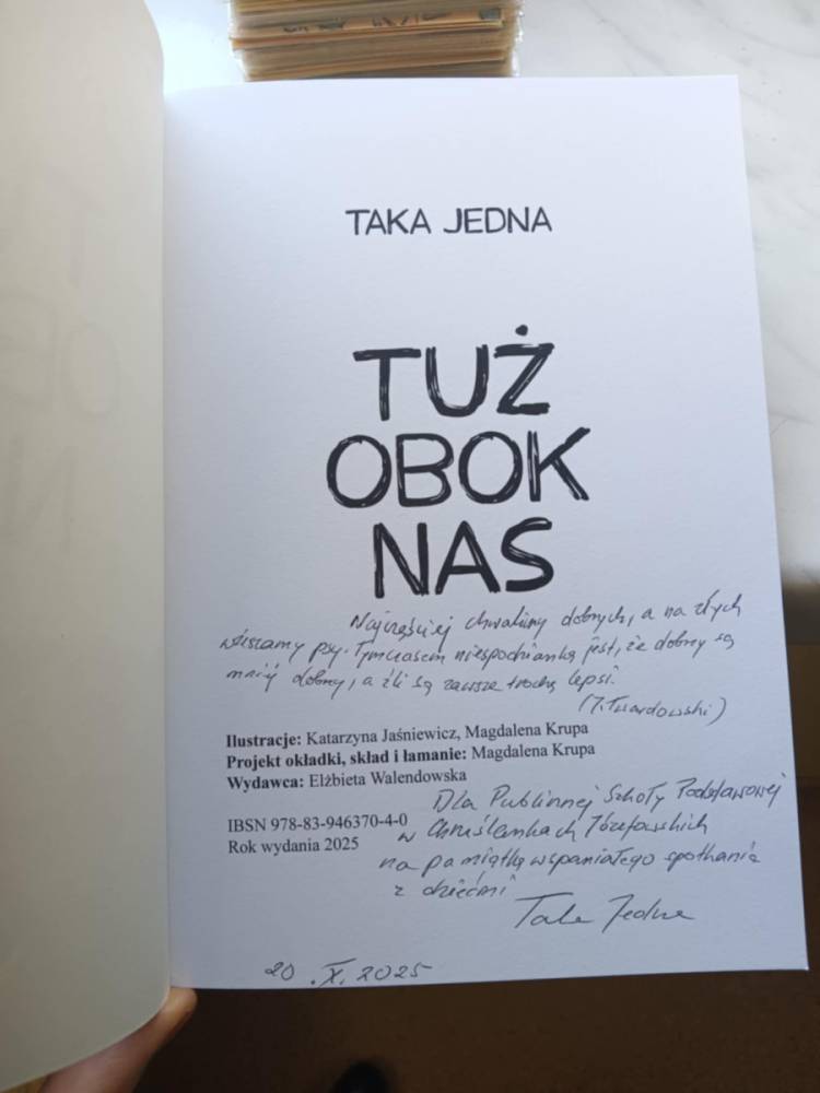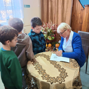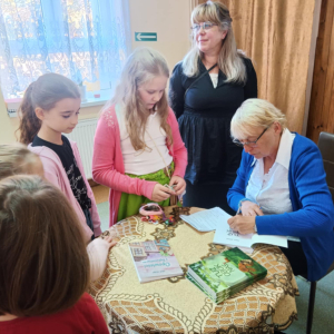 Pani Elżbieta Walendowska podarowała wszystkim szkołom swoje opowiadania. Nie zabrakło też chętnych do zakupu książek z dedykacją oraz autografem. Pisarka zobowiązała się do przekazania kwoty uzyskanej ze sprzedaży na cel charytatywny.
