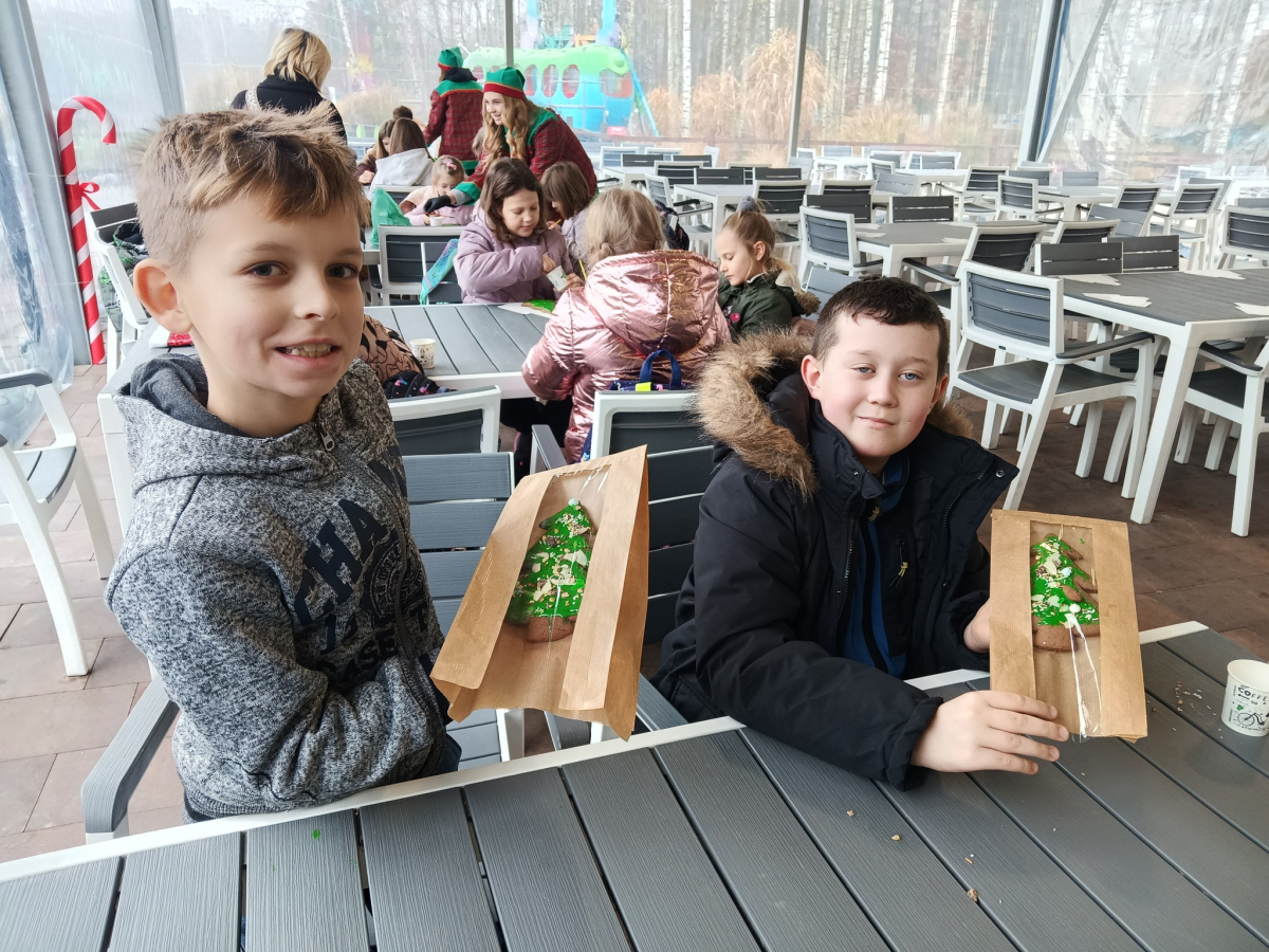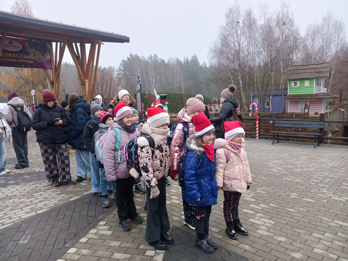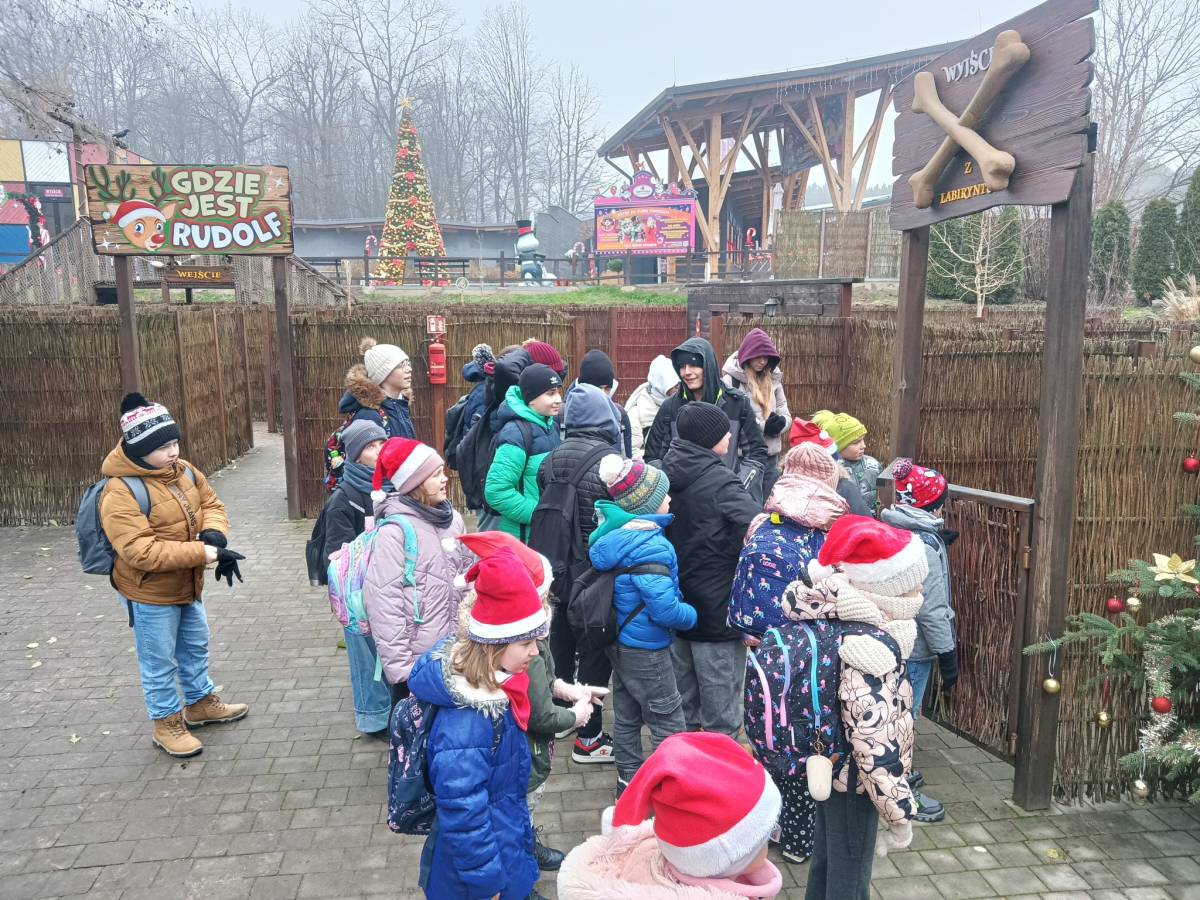 2 grudnia br. uczniowie młodszych i starszych klas wzięli udział w wycieczce szkolnej do Farmy Iluzji i Świętego Mikołaja w Trojanowie. Po parku w zimowej odsłonie oprowadzał Elf. Dzieci miały okazję zobaczyć: Szopkę Bożonarodzeniową, Sortownię Listów, Warsztat Elfów, Piernikowy Pałac, Świąteczną Komnatę, Krainę Bałwanków, Gabinet Świętego Mikołaja, Tunel Zapomnienia i Muzeum Iluzji. W labiryncie, dzieci musiały odszukać renifera Rudolfa. Miały również okazję przejechać się kolejką Polar Express, a także wziąć udział w zdobieniu piernikowej choinki.
